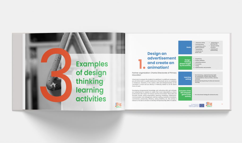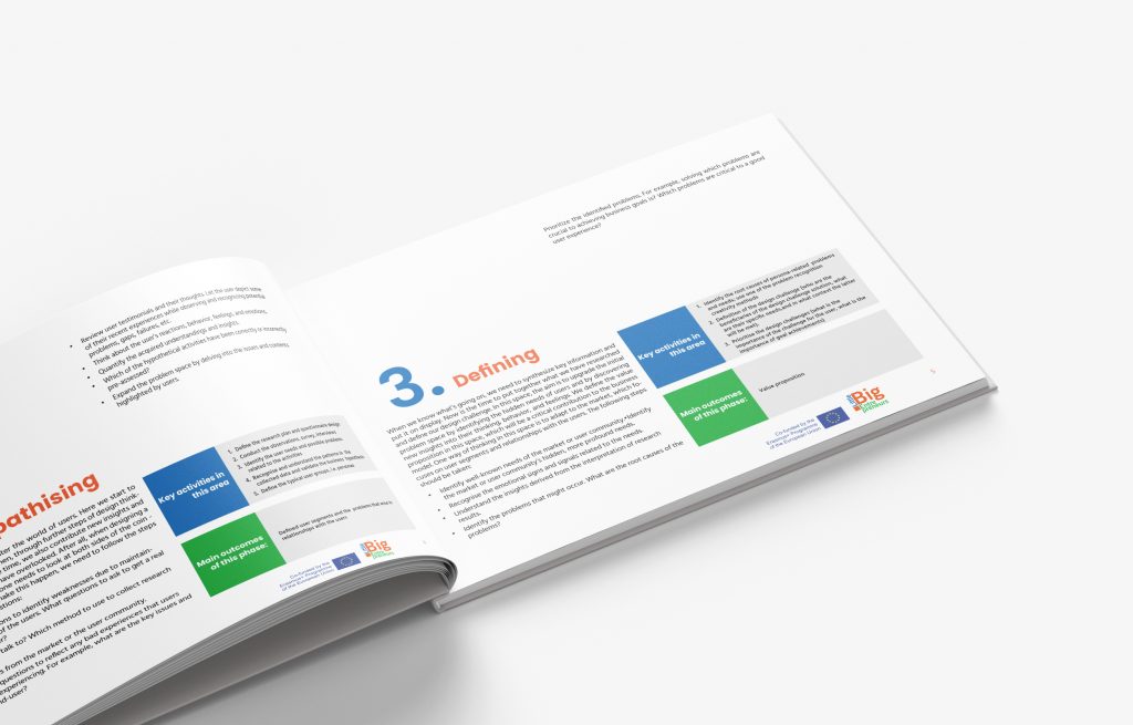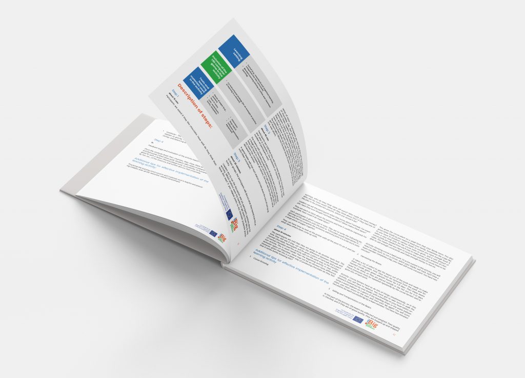 An instructional book that was developed with cooperation of all project partners. The book includes three chapters – two theoretical and one with practical examples of different tasks. The design was based on the logo and style of the given logos and content – the design is minimal, simple and uses four colors. The font choice is minimalistic and corresponds to the project website and other promotional materials.